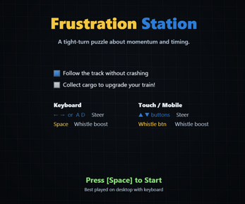 Navigate an invisible train track to reach the exit! Use your whistle to briefly reveal the path ahead, collect cargo to upgrade your train, and try not to derail.