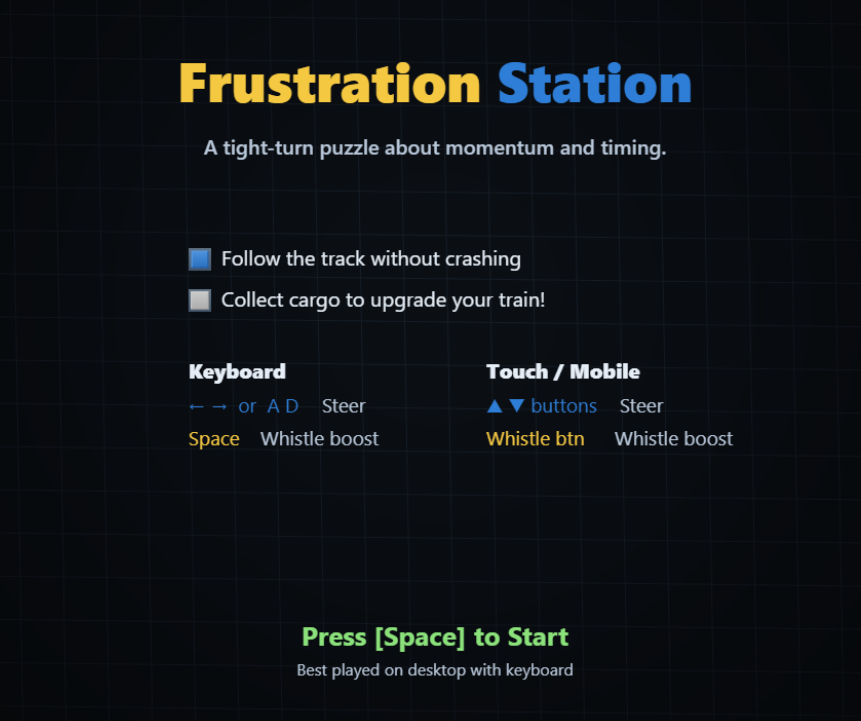 - A/D or Arrow Keys - Steer your train